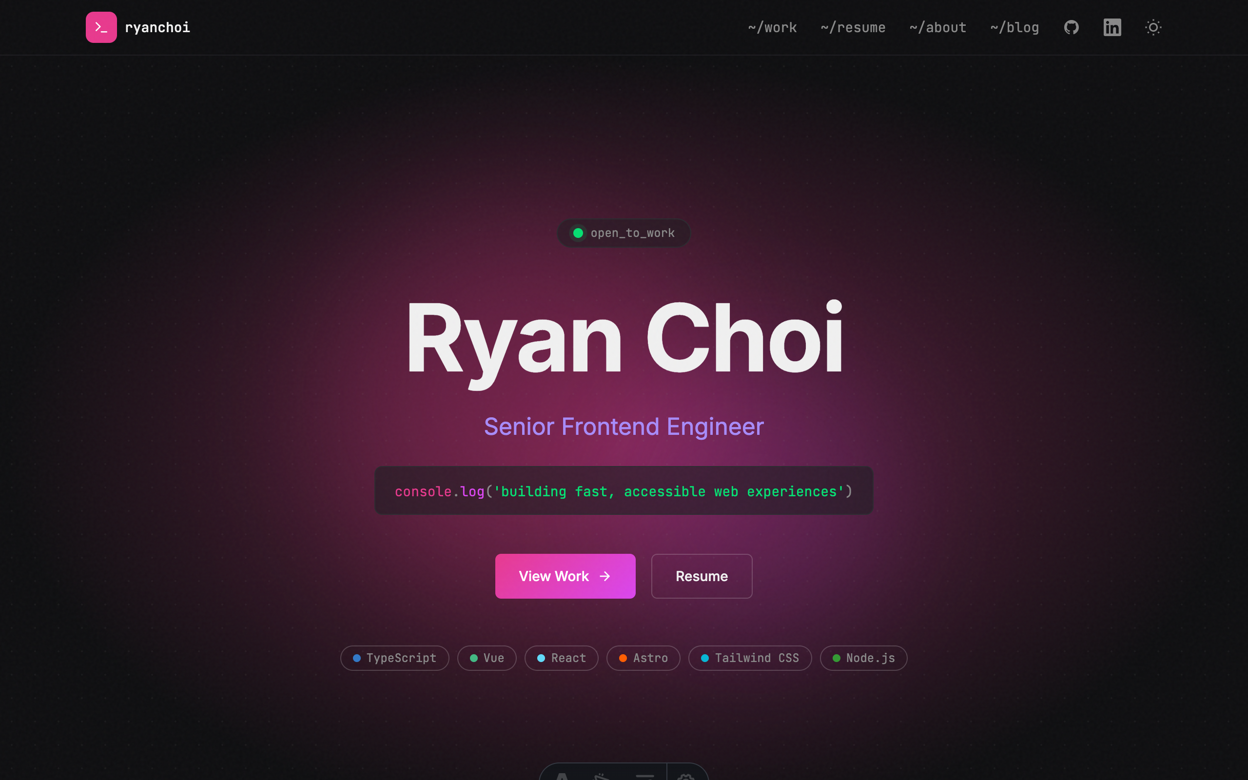 Personal portfolio and blog. Dark-themed, multi-page static site built with Astro 5 and Tailwind CSS v4.
